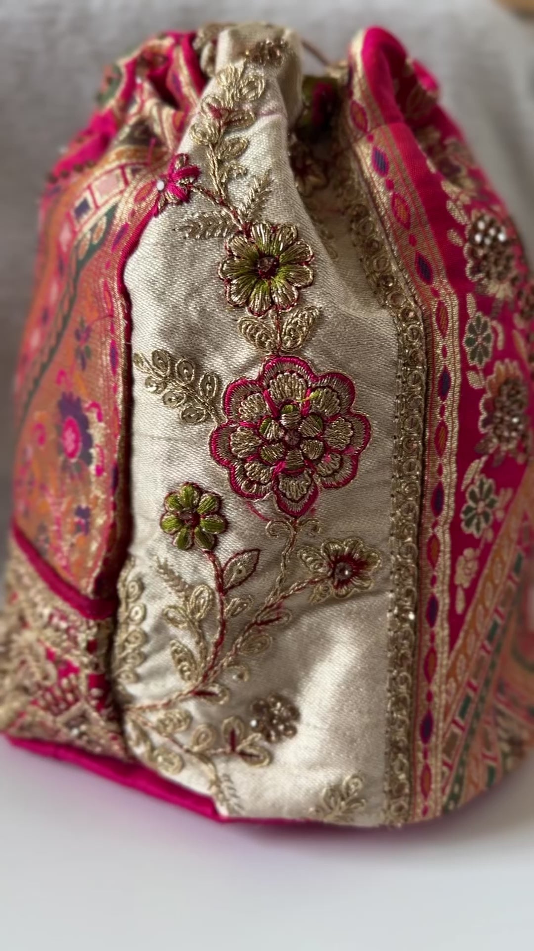 Pink & Ivory Embroidered Potli