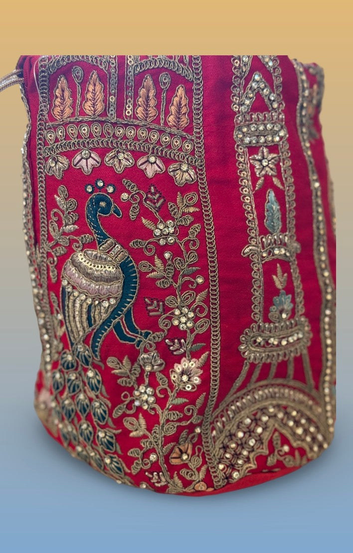 Red Peacock Potli Bag